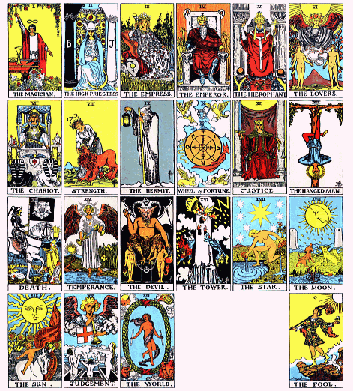 小アルカナとは逆に、類似するカードは一枚もなく、それに応じてカード一枚一枚が個々に意味を成している。